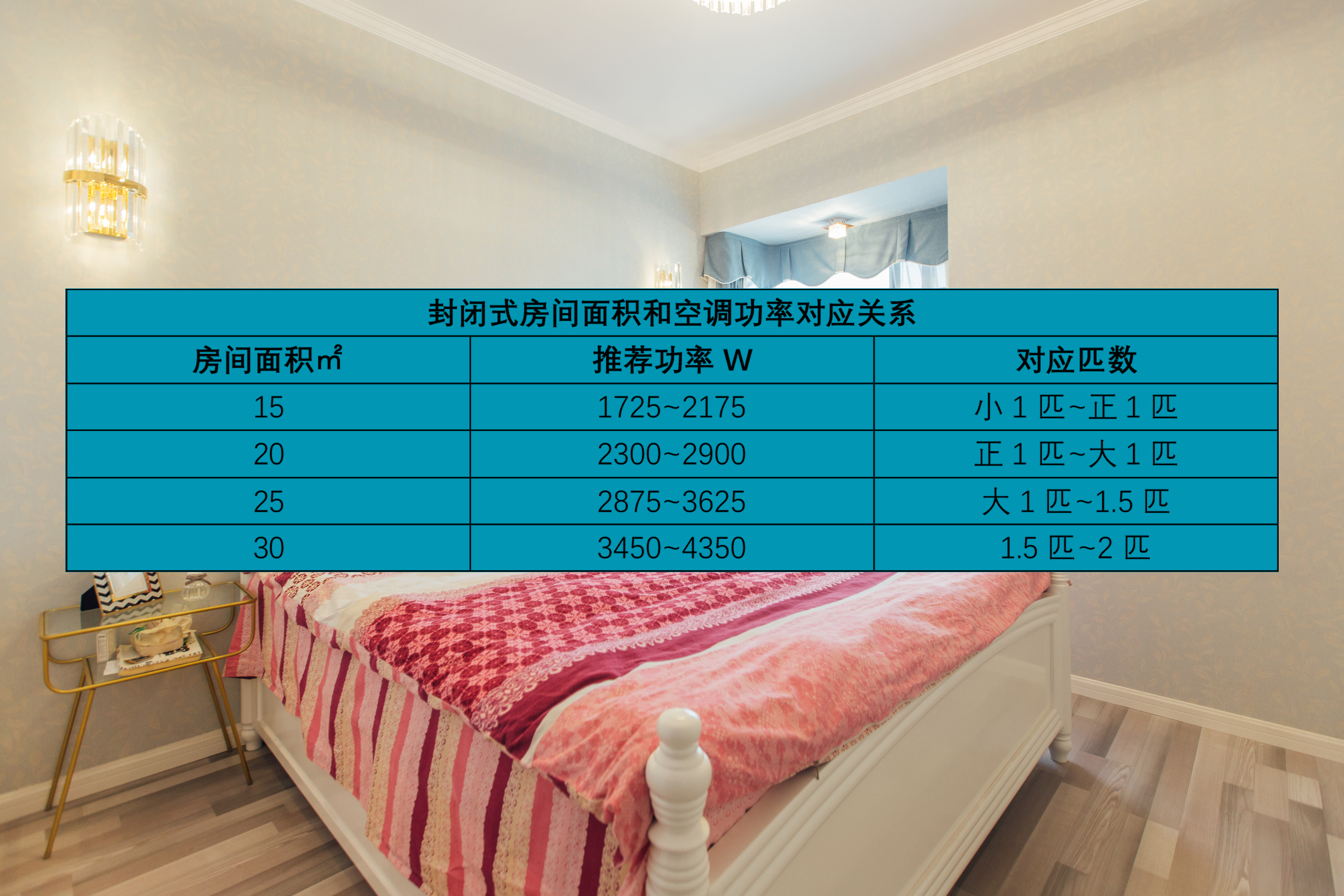 空调的大小真的不重要吗?其实也没那么重要。空调的大小要根据房间面积来选择,对应关系如下: