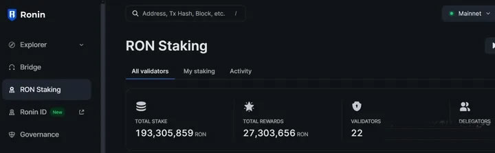 RONIN质押地址: