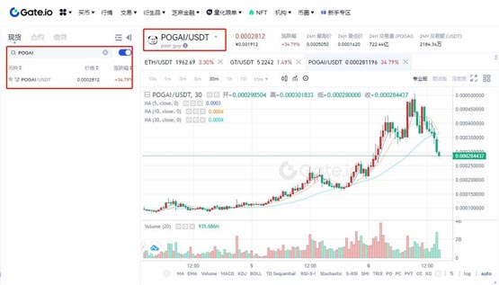 5、在搜索框中输入POGAI,找到POGAI/USDT交易对,即可查看POGAI币的实时行情。