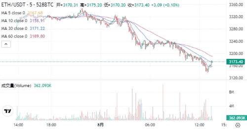 以太坊当前的价格为$3,174.00。在过去24小时内,以太坊价格下跌了3.33%,最高达到$3,349.99,最低为$3,136.20。