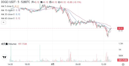 DOGE当前的价格为$0.12063。在过去24小时内,DOGE价格下跌了4.17%,最高达到$0.12760,最低为$0.00521。