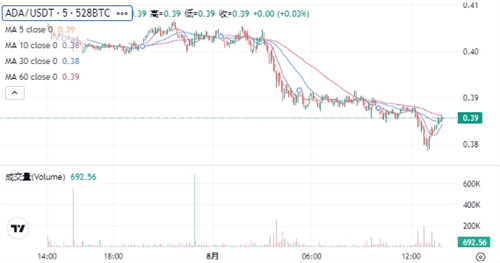 ADA当前的价格为$0.38510。在过去24小时内,ADA价格下跌了4.49%,最高达到$0.40700,最低为$0.37850。