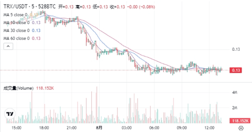 TRX当前的价格为$0.93260。在过去24小时内,TRX价格下跌了2.76%,最高达到$0.13229,最低为$0.12842。