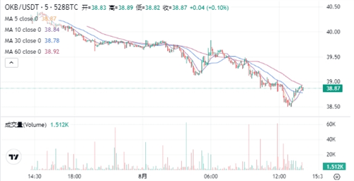 OKB当前的价格为$38.82。在过去24小时内,OKB价格下跌了3.5%,最高达到$40.40,最低为$38.50。