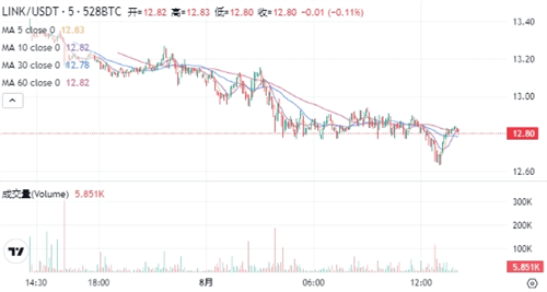 LINK当前的价格为$38.82。在过去24小时内,LINK价格下跌了3.62%,最高达到$13.35,最低为$12.63。