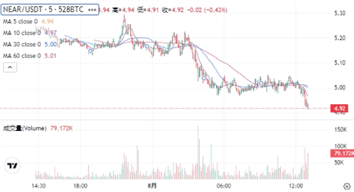 NEAR当前的价格为$5.03。在过去24小时内,NEAR价格下跌了3.2%,最高达到$5.26,最低为$4.93。