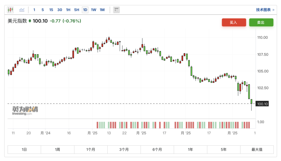 在美股遭遇大规模抛售后,美债资金也加入了抛售行动,再加上资金流出美国,美元指数 DXY 也出现大幅下跌。