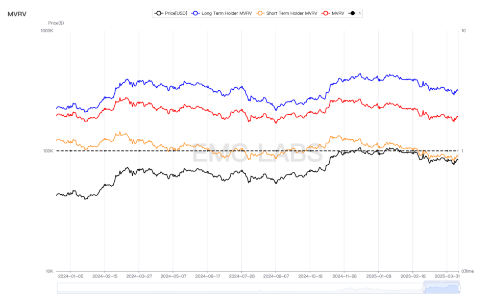 目前长线持有者群体仍在发挥稳定器作用,本周增持,显示出市场流动性仍然相对匮乏。截止周末,短线持有者群体整体仍然处于一定比例的浮亏水平,表明市场依然承受着巨大压力。