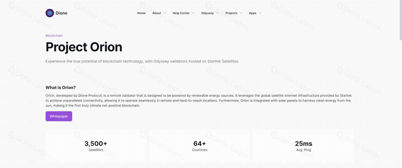 Orion是Dione协议的去中心化物理基础设施网络(DEPIN),利用可再生能源和Starlink提供的全球卫星互联网基础设施,实现在偏远地区运行。
