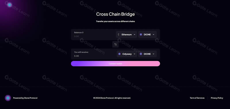 跨链桥是一个去中心化应用(dApp),允许加密货币在不同区块链之间转移,实现生态系统内的互操作性。目前,跨链桥用于在以太坊和Odyssey区块链之间转移USDC和DIONE。