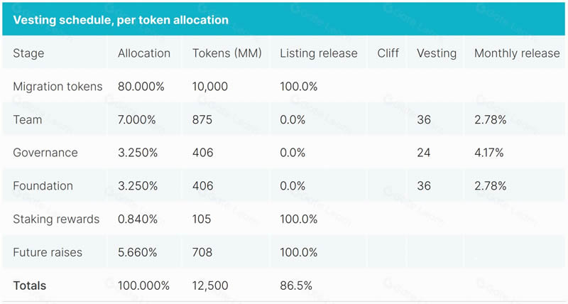 DIONE的总供应量为125亿代币,分配如下: