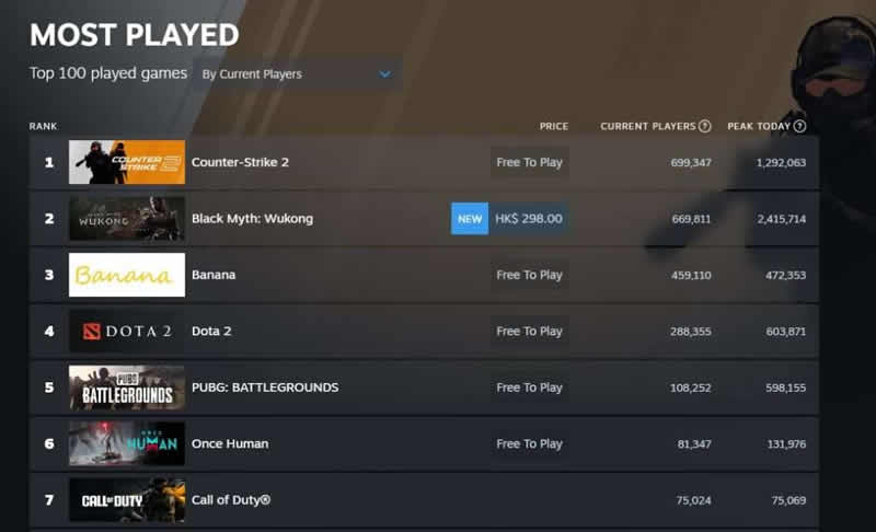 Steam官方数据显示,《黑神话:悟空》上线一小时内,同时在线玩家就突破了100万人,单日同时在线人数甚至超过220万,打破了Steam单机游戏的新纪录。