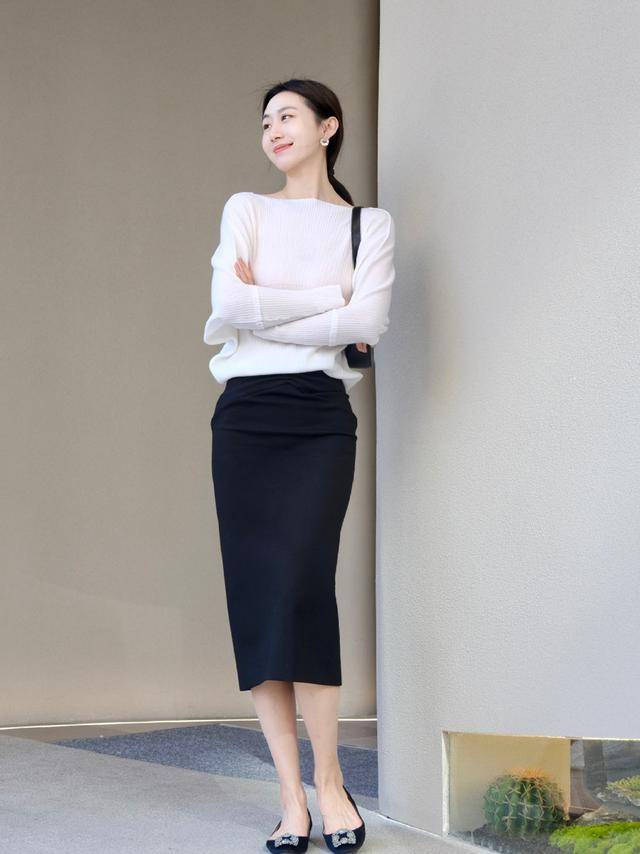 露出的腿部线条用一条肤色的丝袜修饰,整体的色彩温柔又不失质感,搭配一双浅色的高跟鞋,轻松彰显十足女人味,除此之外还有精致的手提包点缀,让你无论是通勤还是出差都百搭出众。下搭米色的短裙,高腰利落的版型,对身材包容性非常强的同时又显瘦显气质,足够满足你的多种穿搭需求,简单上身就足够温柔而美好。