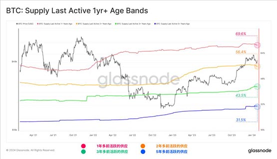 回顾 2023 年,除了 12 月份,比特币的链上交易量始终没能突破 1 兆美元的大关。另一方面,Glassnode 的分析师指出,比特币的活跃供给量在去年 12 月份也创下了历史新低,这反映出投资者对比特币的信心,他们似乎都在等待现货比特币交易所交易基金(ETF)的批准。