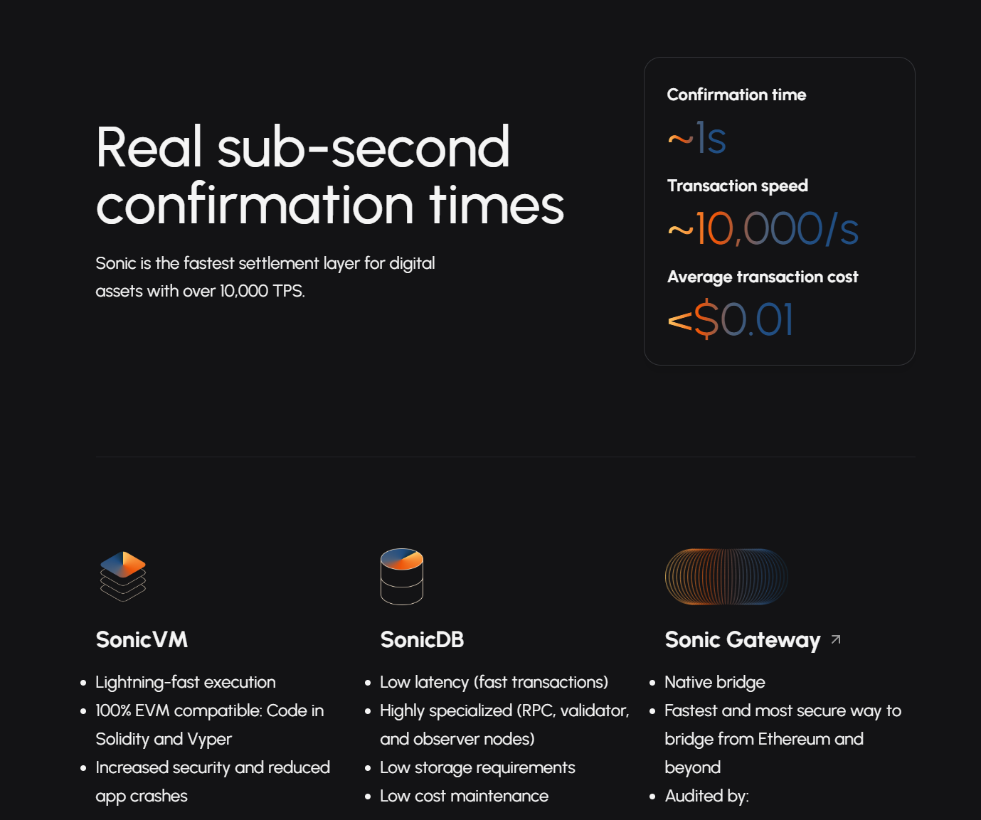 2024年12月18日,Fantom基金会正式更名为Sonic Labs,并宣布Sonic主网上线。作为一款以亚秒级交易速度著称的新公链,性能无疑是Sonic最重要的卖点。仅仅上线三天,Sonic链上就已经产出了100万个区块。Sonic通过对共识层和存储层的深度优化,引入了实时修剪、节点同步加速和数据库减肥等技术,使得节点在确认和记录交易时负担更轻。官方数据显示,与旧的Opera链相比,节点同步速度提升了10倍,大规模RPC节点的成本降低了96%,为高性能网络打下了坚实基础。