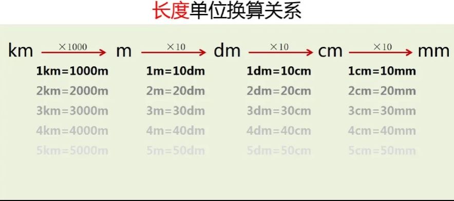 1厘米=(10)毫米 1分米=(10)厘米
