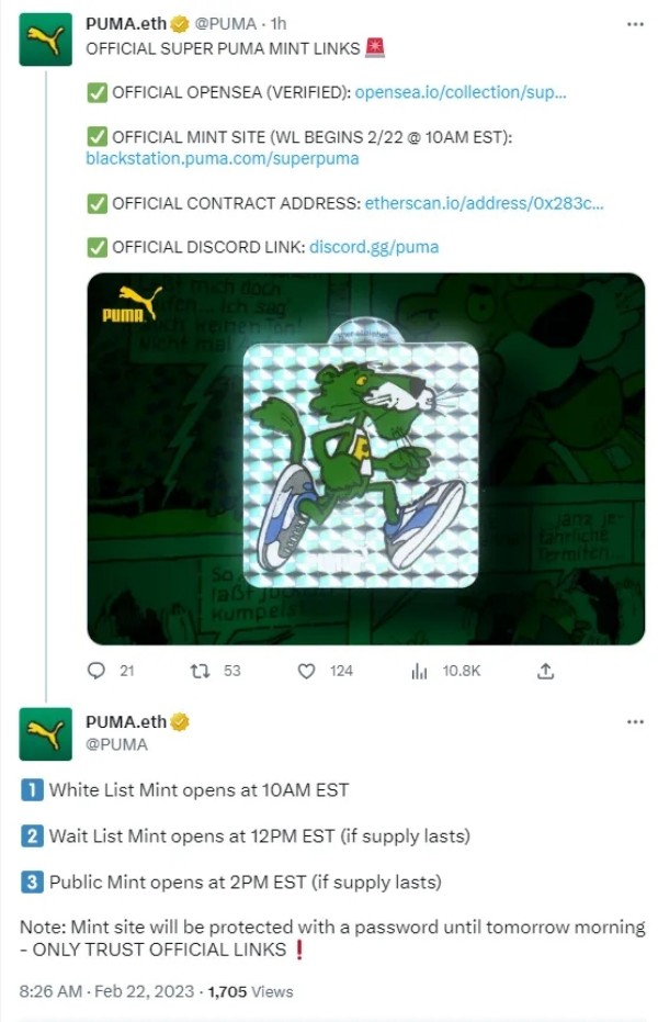 另请注意,已铸造2000个“Super PUMA NFT”以备将来合作之用。
