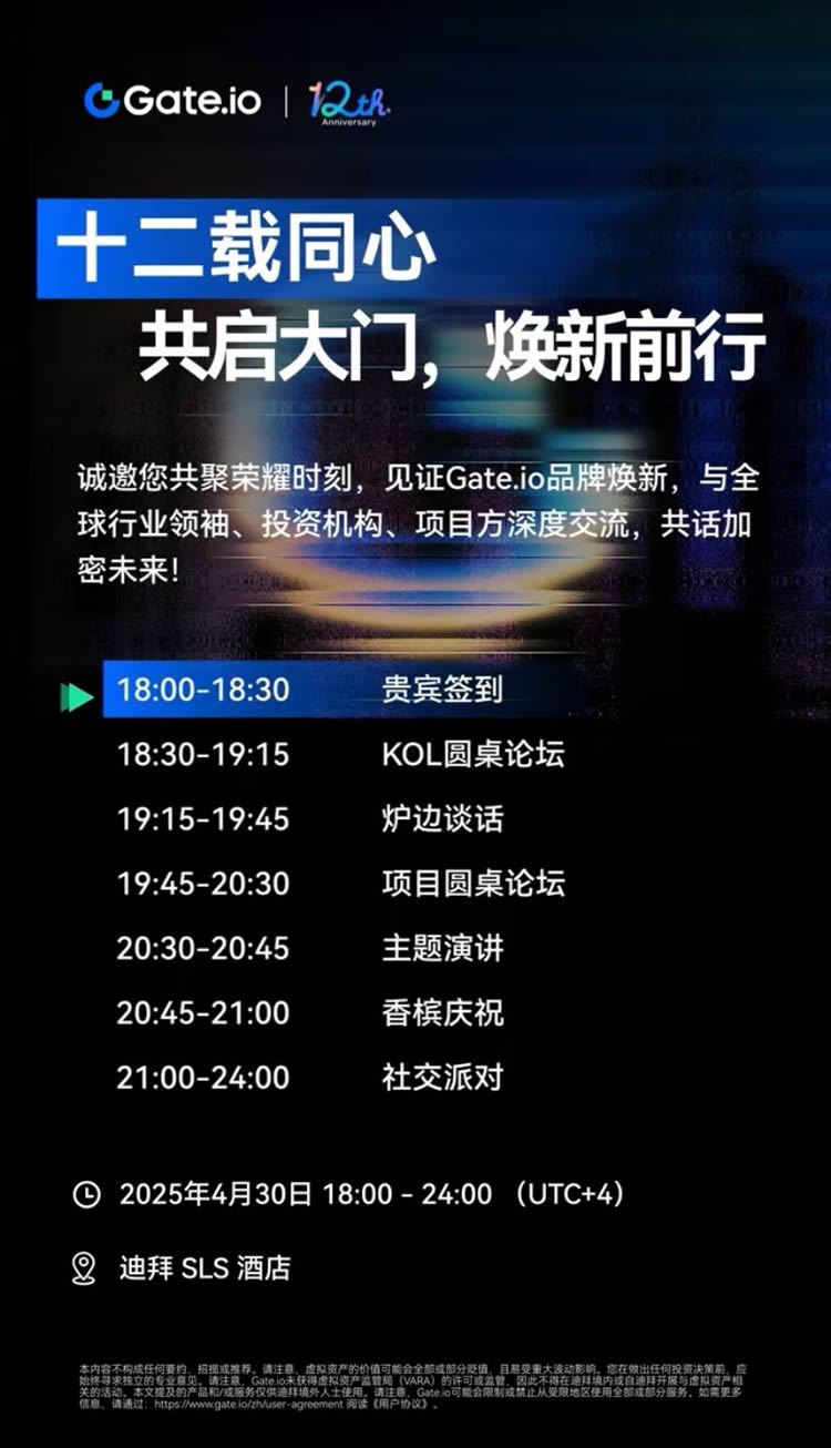 嘿,你听说过吗?Gate.io 要在迪拜举办一个盛大的十二周年庆典!这可是他们从 2013 年成立以来的一个大里程碑啊。我们都知道,Gate.io 在加密货币交易领域可是个大玩家,这次庆典肯定会很热闹。