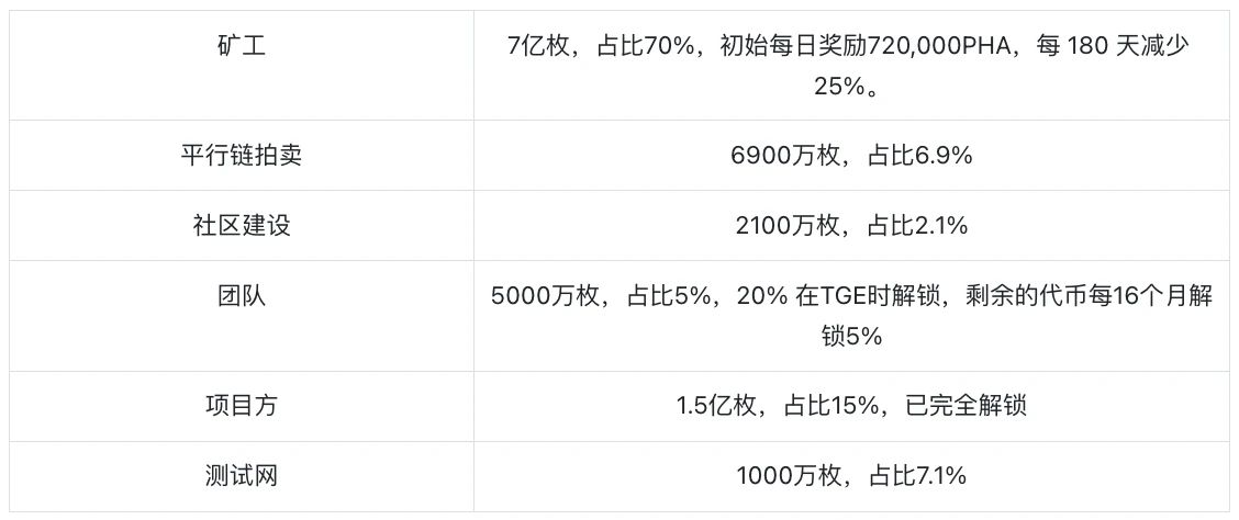 PHA 总量为 10 亿枚,现在流通量为 7.383 亿枚,流通率为 73.83%。