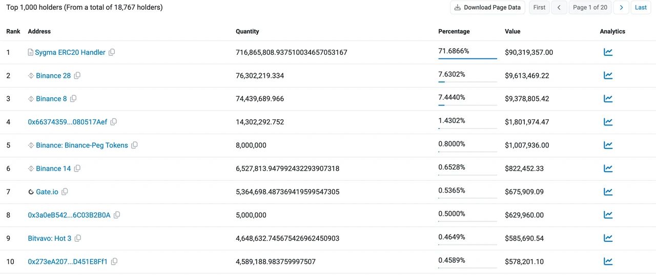 PHA 持有地址前十名(数据来源:https://etherscan.io/token/0x6c5bA91642F10282b576d91922Ae6448C9d52f4E#balances)