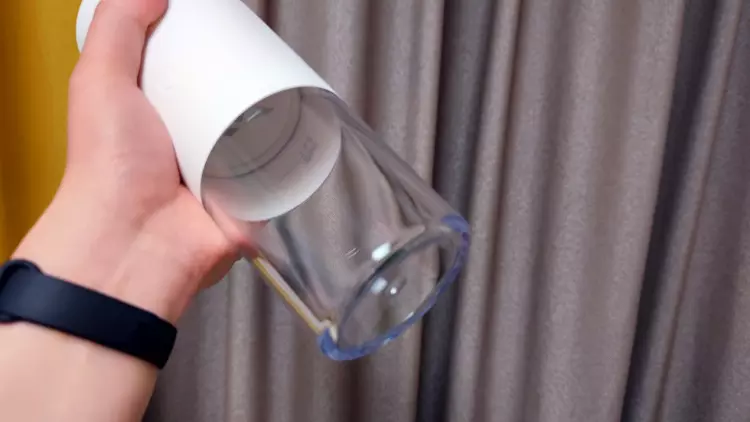 ▲ 榨汁杯的杯身用的是食品接触级的Tritan材质,用起来放心。而且杯壁挺厚的,最厚的地方有5mm,感觉很结实。杯子的透明度也很好,榨汁的时候能清楚地看到里面的状态。