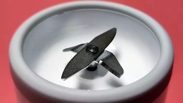 ▲ 榨汁机的核心就是电机和刀头了。这款用的是直流电机,转速能达到18000转/分钟,动力很足。刀头是304不锈钢的四叶刀头,也是食品级材质,用起来放心。3D扰流设计,搅拌起来更高效细腻。