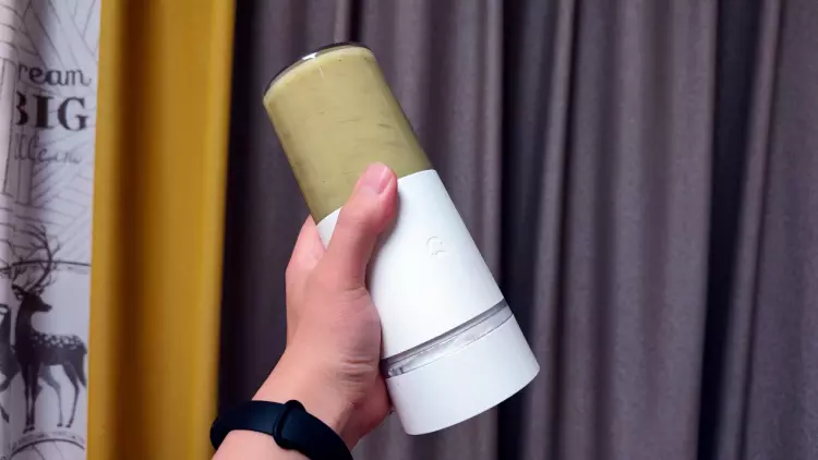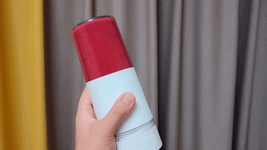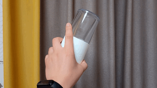 ▲ 启动方式很简单,连续按两次顶部的开关键就行。下面就来体验一下榨汁的效果吧~