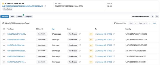 除了在DEX上抛售,FlowTraders还将其持有的350万枚STRK转移到了加密货币交易所,并将10万枚STRK存入了另一家交易所。这些操作可能预示着未来进一步的出售或交易。目前,FlowTraders还剩余约74.7万枚STRK。