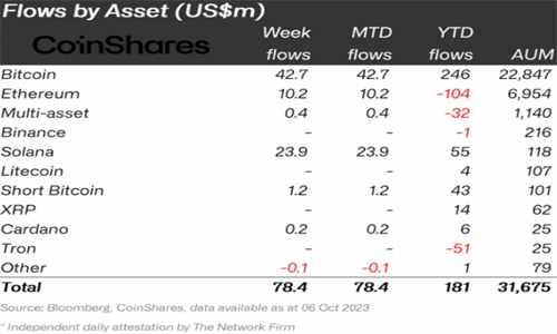 CoinShares 的数据显示,截至 10 月 6 日,比特币的专项投资基金今年已经吸引了 2.46 亿美元的资金。而以太坊基金却遭遇了资金流出,同期流出资金高达 1.04 亿美元。