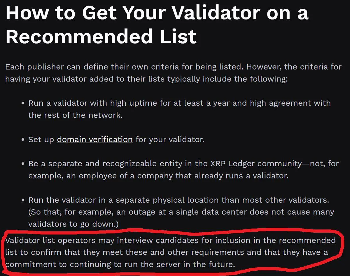 Bons 进一步指出,虽然用户可以修改自己的 UNL,选择信任的节点,但这与真正去中心化的加密货币的 "无需信任" 本质截然不同。XRP 并非无需信任的,而且如果用户的 UNL 与网络其余部分重叠不足,将面临分叉的风险。Ripple 官方文档显示,需要 90% 的 UNL 重叠才能防止分叉,这意味着实际上需要获得 XRP 基金会的许可才能参与共识,这几乎等同于中心化控制。