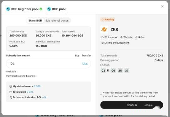 (4) 在你偏好的池子页面中输入你想要质押的金额,然后点击「确认」即可!