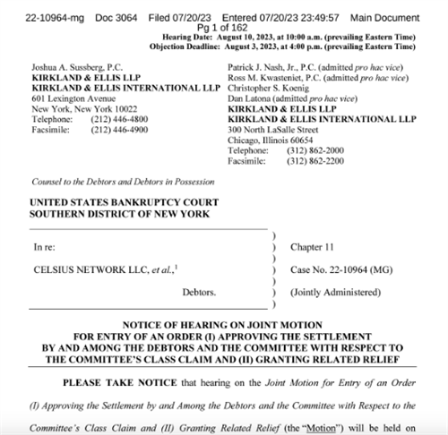 根据提交给法院的文件显示,这两项和解协议旨在解决 Celsius 管理层涉嫌欺诈和不实陈述的问题,并为那些在 Celsius 赚取计划中存有资金的客户提供解决方案。法官 Martin Glenn 将在听证会上对这些协议进行审查,并处理高达 782 亿美元的无担保索赔。