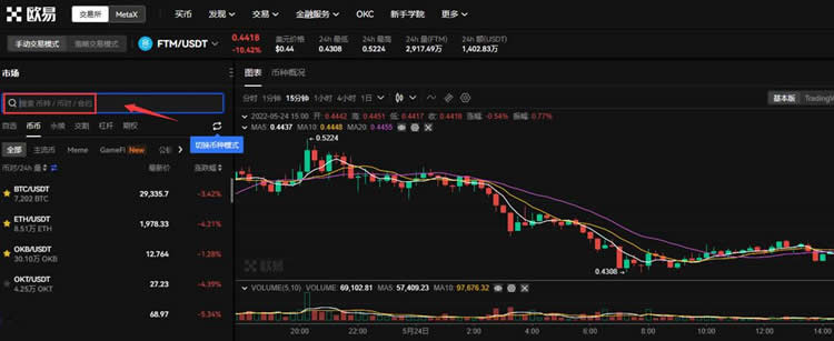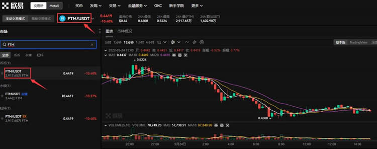 6. **选择交易对:** 找到 FTM 后,点击进入它的交易页面。你会看到不同的交易对,比如 FTM/USDT(用稳定币交易 FTM)。