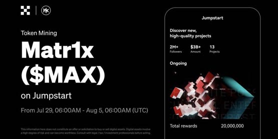 OKX 交易所宣布,将于北京时间 7 月 29 日下午 2 点上线 Web3 娱乐平台 Matr1x 的治理代币 MAX,并开启 "MAX 新币挖矿" 活动。