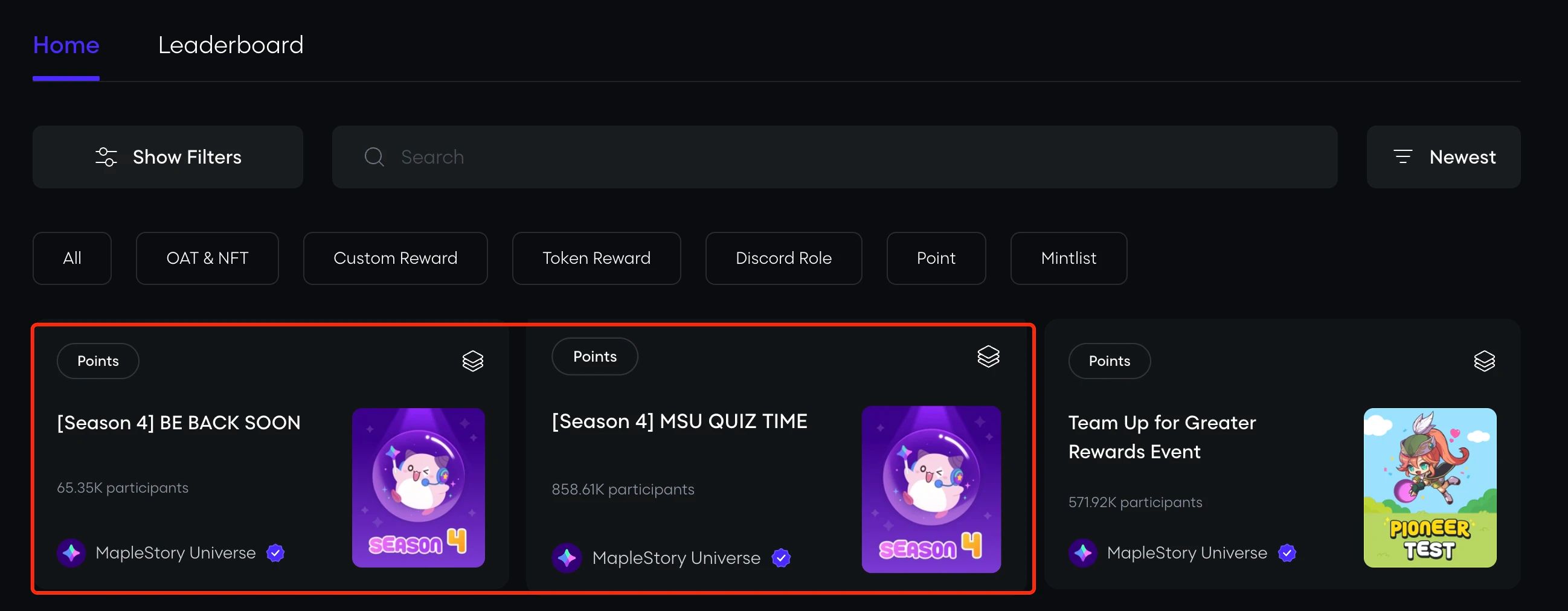本次分享的是 MapleStory Universe 最新上线的 Season 4 任务,该任务于 8 月 5 日上午 08:00 开始,持续到 8 月 19 日上午 07:59:59。目前更新的任务有 MSU QUIZ TIME 任务与每日访问任务 BE BACK SOON。