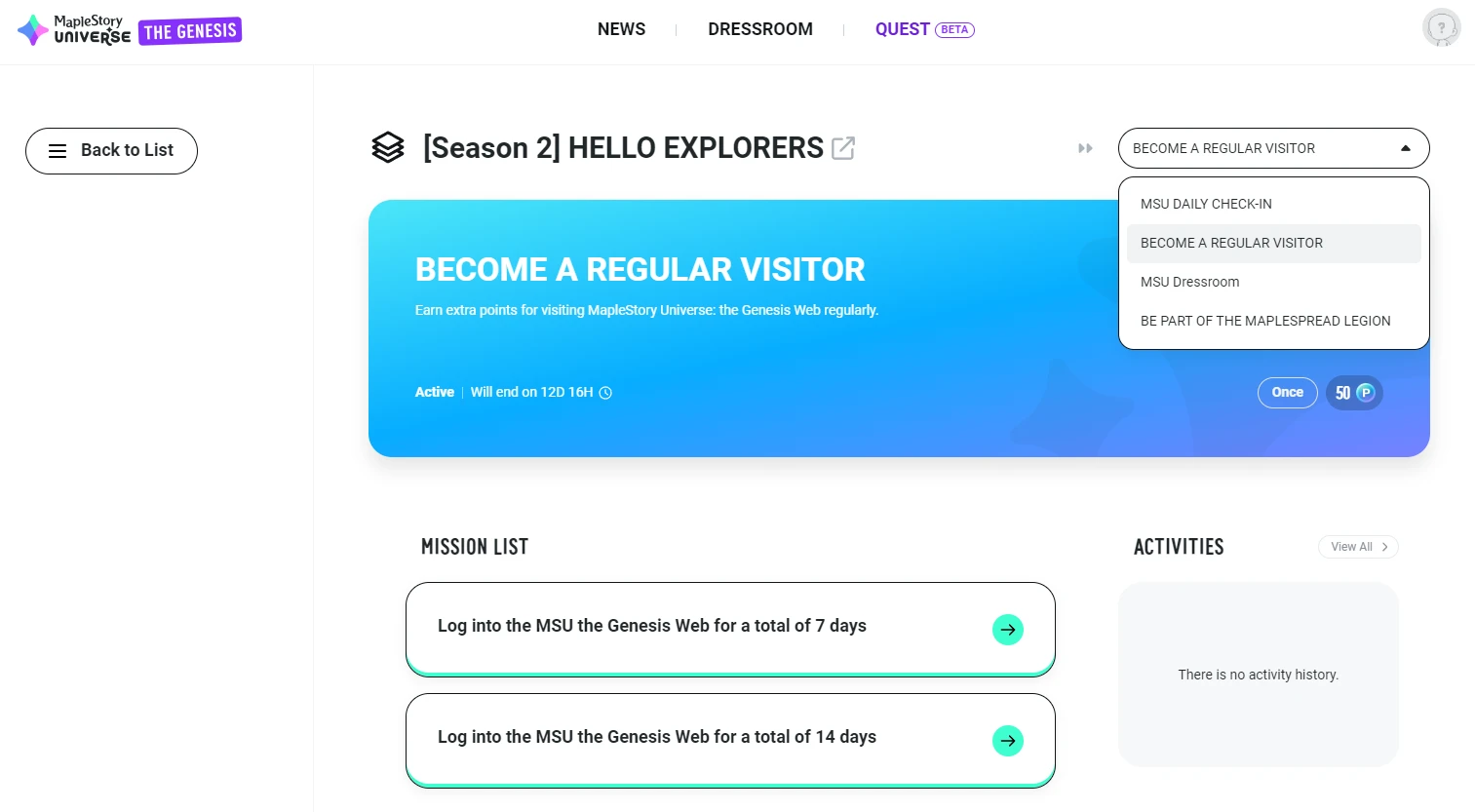 Season 2:HELLO EXPLORERS 中的其他任务分别需要账号注册7天与14天、MSU Dressroom 3级、Discord 对应角色等。