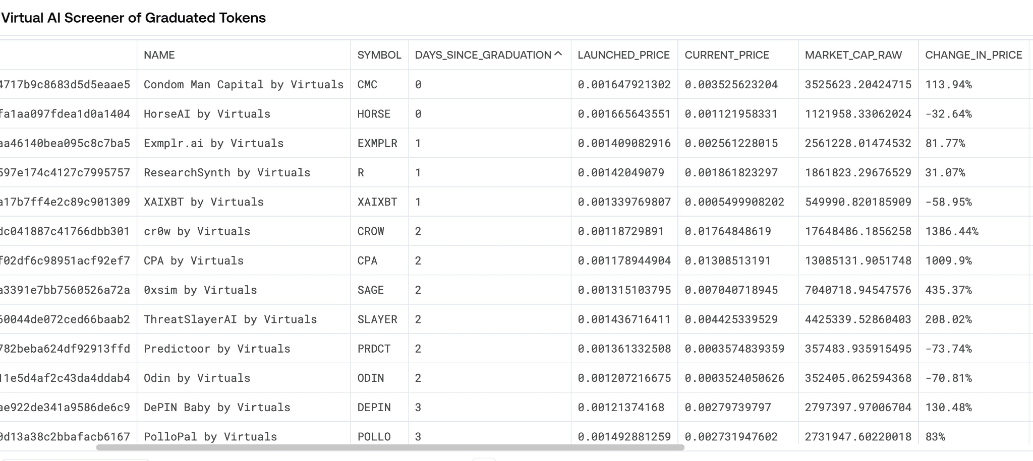 使用 Virtual AI Agent Token Screener 工具。