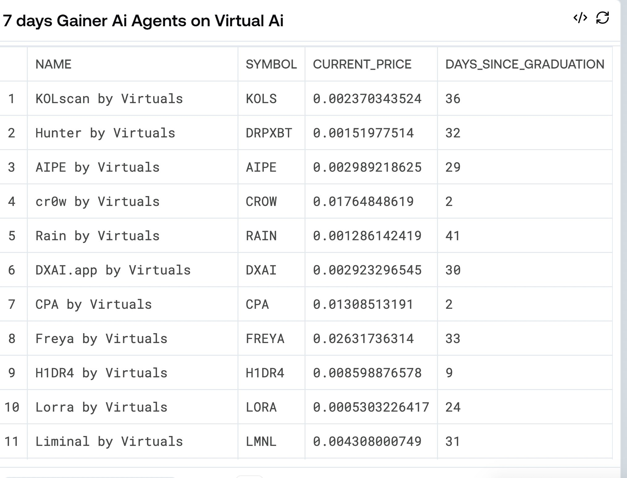 关注持续上涨的代币,那些毕业后持续吸引关注的代币,往往具备更多上涨潜力。此外,通过一定时间增长表格追踪强势代币,发现市场动能最强的代理。