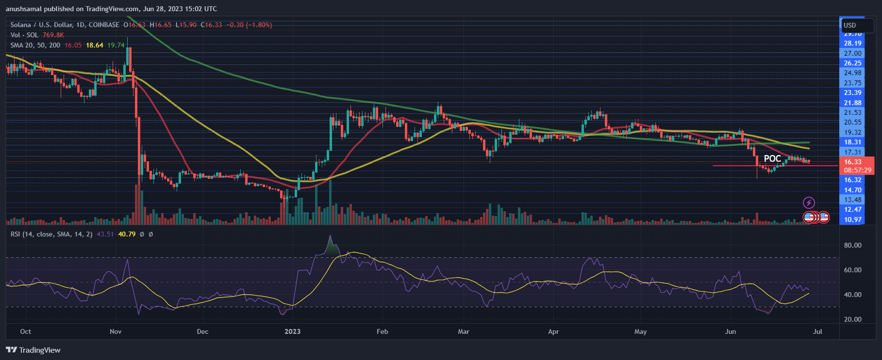 SOL 的购买强度仍然较低,未能成功突破 17 美元。相对强弱指数 (RSI) 尝试反弹,但未能突破 50。这表明卖家仍然占据主导地位。此外,SOL 已经跌破 20 简单移动平均线,暗示价格可能会进一步下跌。