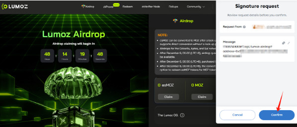 步骤 1:访问 Lumoz 官方网站(https://lumoz.org/airdrop)