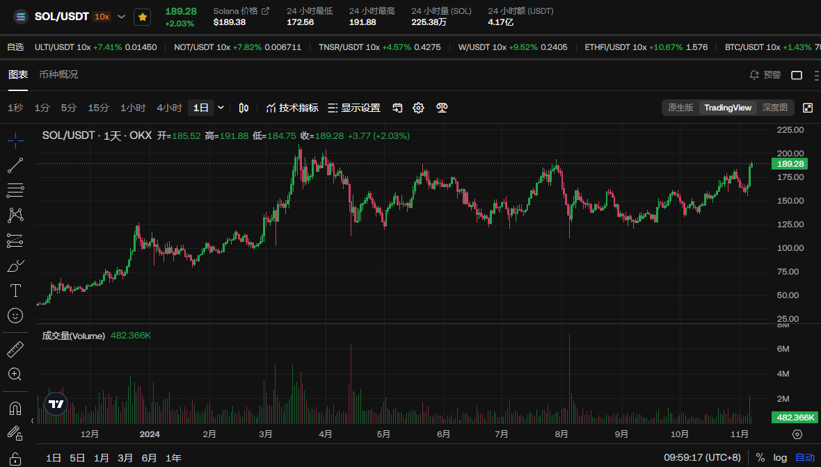 Solana(SOL)作为市值排名前列的山寨币,最近也引起了市场的广泛关注。数据显示,过去一个月,Solana的价格上涨了10%以上,从143美元涨至160美元。