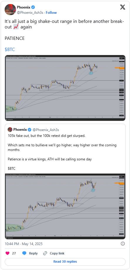 也有人认为,比特币牛市可能快要结束了,但短期内还是有机会再创新高的。如果能突破108000美元的阻力位,甚至有可能冲到120000美元。当然,这只是其中一种看法。