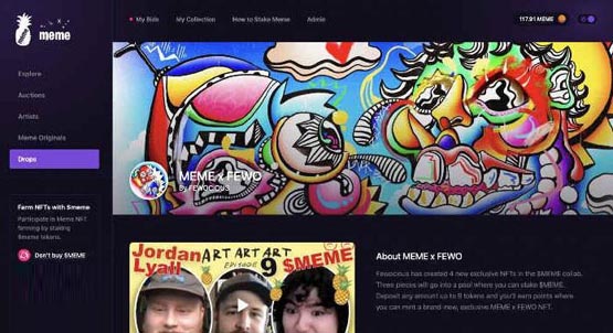 MEME是一项实验性协议,其创新之处在于将DeFi与NFT巧妙融合。用户可以通过将MEME存入流动池来获得NFT,系统会根据投入的MEME通证数量来分配NFT份额。