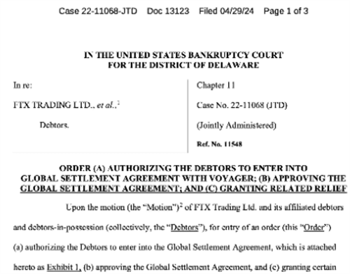 4月30日,加密货币领域迎来了一项重大进展:已停业的加密货币交易所FTX与其债权人Voyager Digital达成了一项4.5亿美元的和解协议,并获得了美国特拉华州破产法院法官John Dorsey的正式批准。