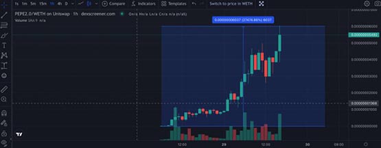 就在大家以为Meme币的热潮已经过去的时候,一个名为Pepe2.0的新币悄然走红。这个币种上线不到两天,市值就突破了千万级别,价格更是飙升了上百倍,让人不禁感叹Meme币市场的疯狂。