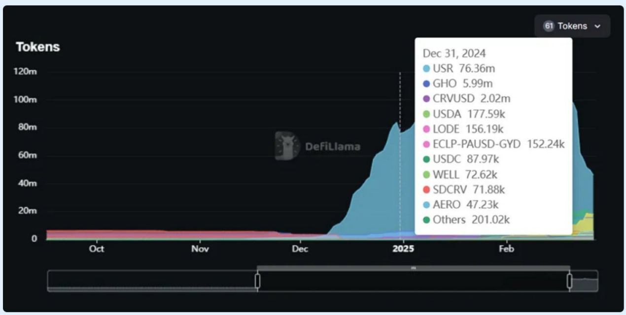 仅在 2024 年 12 月,TVL 就从 2000 万美元增长到 1.43 亿美元,这主要得益于 USR 集成和稳定币收益需求。