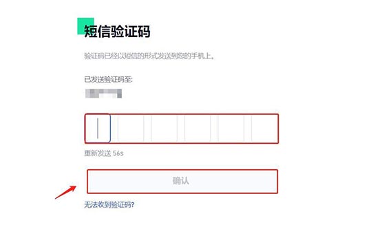 3、输入手机收到的6位数字验证码,点击“确认”。