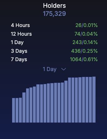 在加密货币市场中,wallet持有者数量和wallet分布是两个很重要的指标,但经常被大家忽略。wallet持有者数量的增长说明市场对这个项目感兴趣。如果一个项目无法吸引wallet持有者,那它可能会逐渐失去价值。从上图可以看出,MIGGLES 的wallet持有者数量一直在稳步增长,说明它成功吸引了大家的关注。