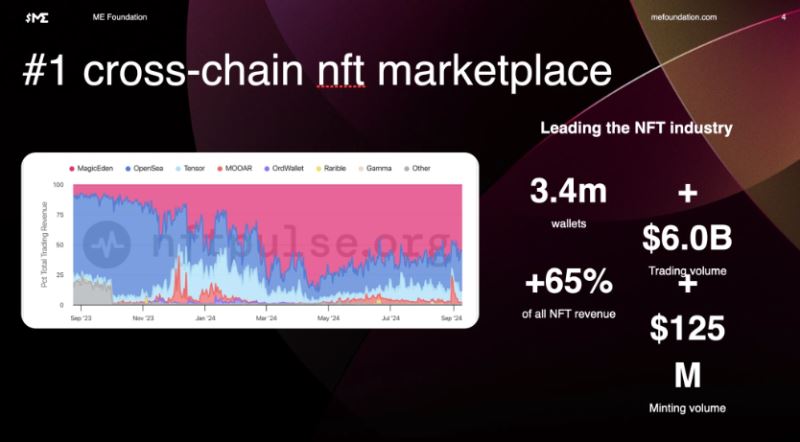 我们的协议起步于Solana,并逐渐扩展到了多条区块链,这就是许多人认识我们的原因。如今,我们的平台已有超340万地址,总交易量超60亿美元,所处理的NFT收入占全行业的65%。