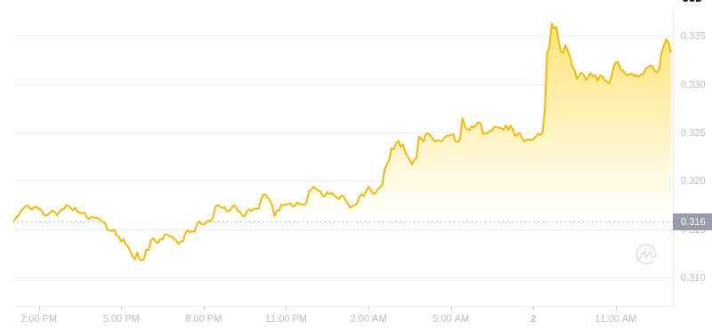 截至2025年1月2日下午1点,狗狗币(DOGE)的价格达到了0.33美元,过去24小时内的交易量超过了23亿美元。相比前一天,狗狗币的价格上涨了约5.6%,这让很多投资者感到兴奋。